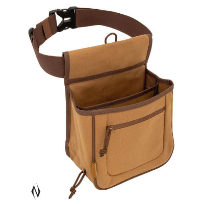 The Rival Double Compartment Shell Bag by Allen is made using a heavy cotton canvas material and can hold up to two boxes of 2-3/4-inch 12 Gauge shotgun shells side-by-side. Use the inside compartment to hold your shotgun shells and put your empty hulls in the outside pocket. When the hull compartment is full, slide the bottom of the pocket opens with the zipper too, quickly dump them out. The Rival Double Compartment Shotgun Shell Bag comes with a 2-inch wide webbed belt that adjusts up to 52-inches and has a large side release buckle.